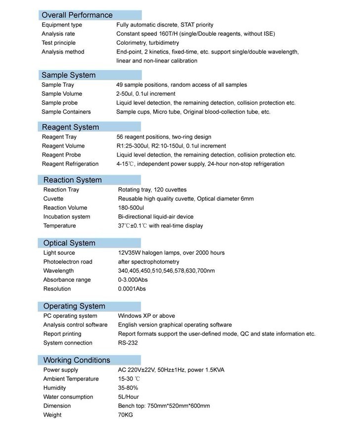 JY-A10 Fully-Automatic Biochemsitry Analyzer