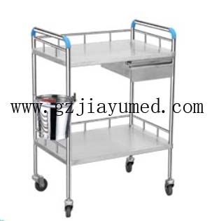 JY-A9 Stainless steel treatment cart(with drawer、stainless steel barrels)